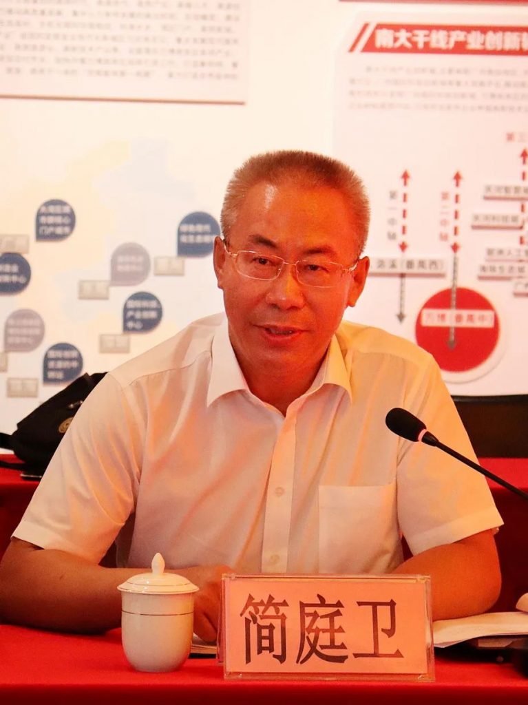 7月12日,市工商联二级巡视员陈立陪同新疆阿勒泰地区人大工委副主任、地区工商联(总商会)主席简庭卫一行到广州市番禺南村总商会进行考察交流。