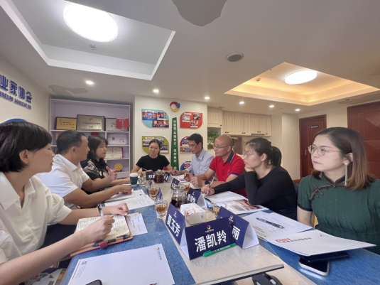 8月9日,粤港澳大湾区经济文化促进会(以下简称促进会)监事、广州路加环保有限公司总经理杨建,执行秘书长陈友军,副秘书长、越秀地产产业发展与公共关系部总监王小丽,副秘书长郑静静,项目部副部长盛靖怡等人走访了广州市青年企业家协会(以下简称市青企协),与该协会秘书长、正佳企业集团有限公司公关部副总监胡永国,监事、广州市启零信息科技有限公司总经理杜琳琳等人座谈交流。