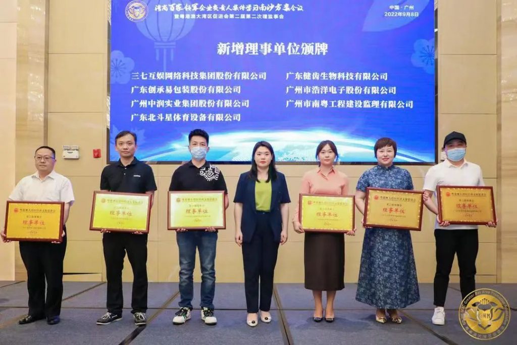 增补三七互娱网络科技集团股份有限公司高级副总裁杨军、广州市浩洋电子股份有限公司董事长兼总经理蒋伟楷、广东健齿生物科技有限公司董事长陈贤帅、广东创承易包装股份有限公司董事长庄映林、广州中润实业集团股份有限公司总裁李恺阳、澳门新大陆全球跨境电商有限公司董事局主席刘金东、广东北斗星体育设备有限公司总经理向丽、广州市南粤工程建设监理有限公司总经理胡繁华为促进会理事。