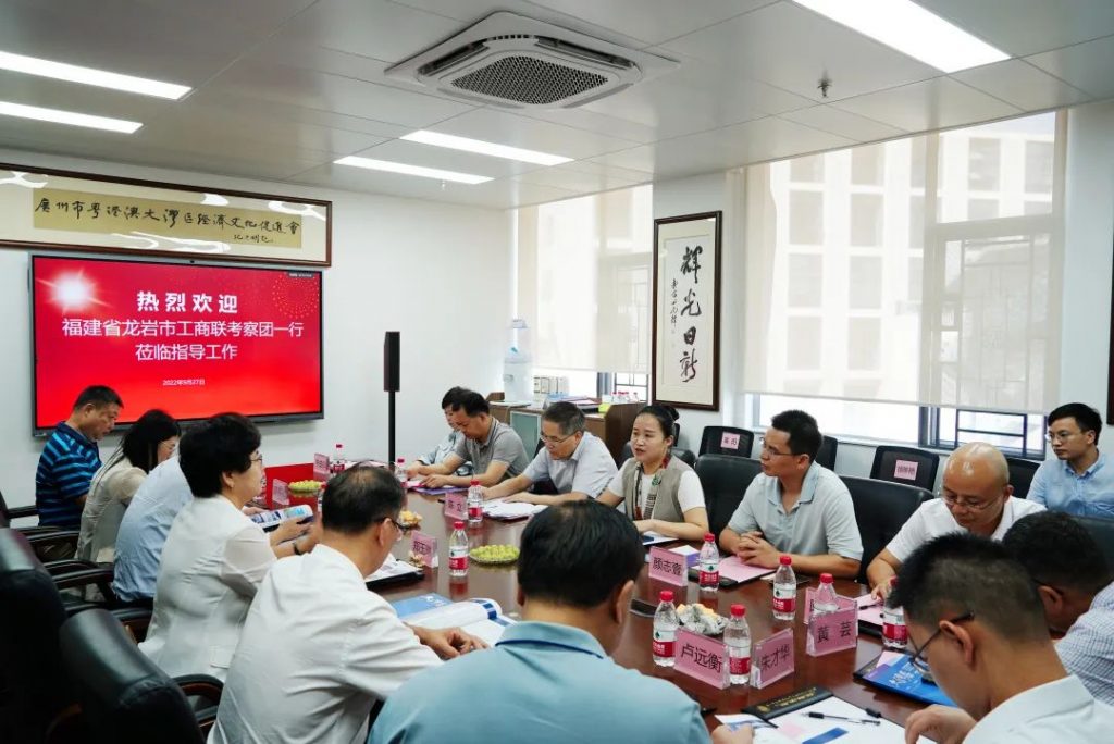9月27日,福建省龙岩市工商联考察团莅临粤港澳大湾区经济文化促进会(以下简称:促进会)进行参观考察和学习交流。龙岩市政协副主席、市工商联主席郑玉琳,龙岩市委统战部副部长、市工商联党组书记蒋海鸿,龙岩市工商联党组成员、副主席廖连强,龙岩市工商联党组成员、秘书长颜燕芬,漳平市委统战部副部长、市工商联党组书记卢远衡等一行到访促进会,与促进会副会长颜志壹、副会长兼秘书长李晓岚、常务副会长单位广州励丰文化科技股份有限公司副总裁李曲柳、执行秘书长陈友军等座谈交流。广州市工商联二级巡视员陈立陪同考察。