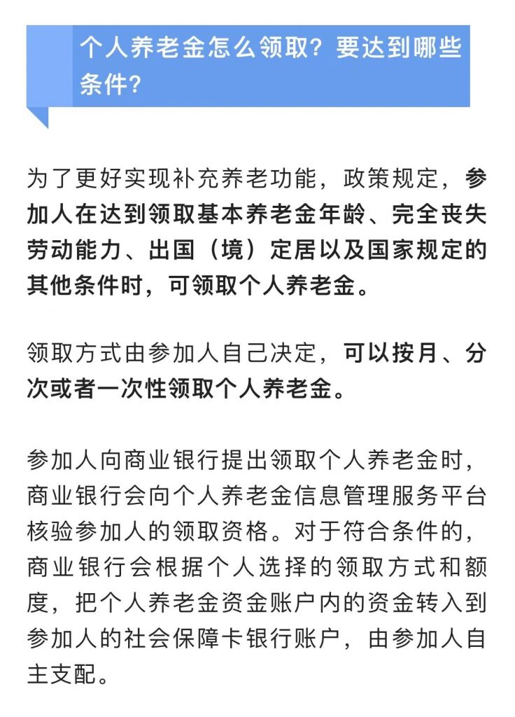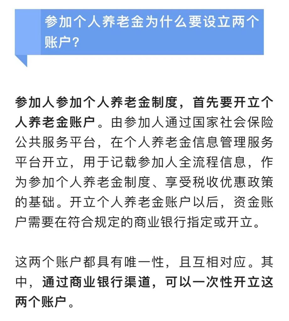 记者了解到,参加人参加个人养老金,应当通过国家社会保险公共服务平台、全国人力资源和社会保障政务服务平台、电子社保卡、掌上12333APP等全国统一线上服务入口或者商业银行渠道,在信息平台开立个人养老金账户。
