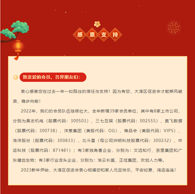 感恩支持 | 2023共赴新程!大湾区促进会祝您元旦快乐!