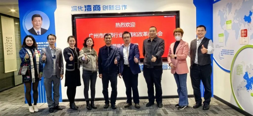 1月11日,广州市律师协会律师行业发展与改革工作委员会(简称:广州律协发改委)主任谭日兴等一行委员代表莅临广州市粤港澳大湾区经济文化促进会(以下简称:我会),与我会副秘书长高阳、副会长单位乐天控股集团副总裁孙志彬等座谈交流。
