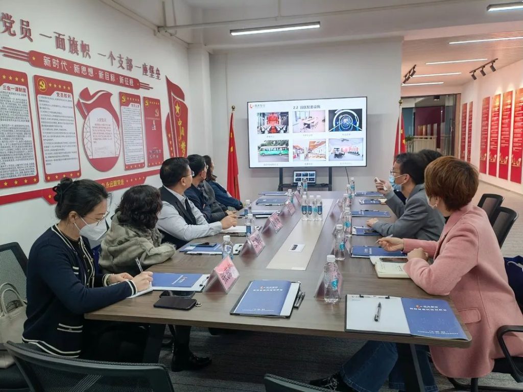 在参观我会展厅时,高阳副秘书长介绍了我会的服务宗旨、组织架构、特色活动等。谭日兴主任一行还参观了乐天智谷园区的园区配套、六位一体产业服务平台、企业全生命周期等服务体系。