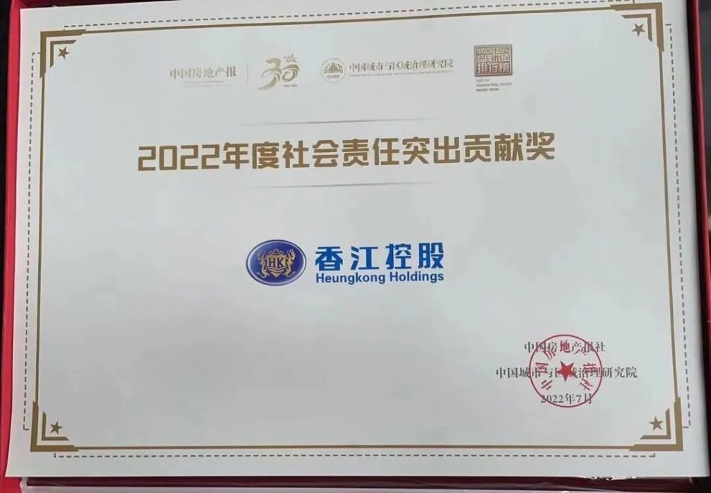 - 香江控股荣获2022年度社会责任突出贡献奖