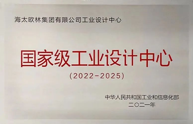 - 海太欧林集团荣获 “国家级工业设计中心”授牌