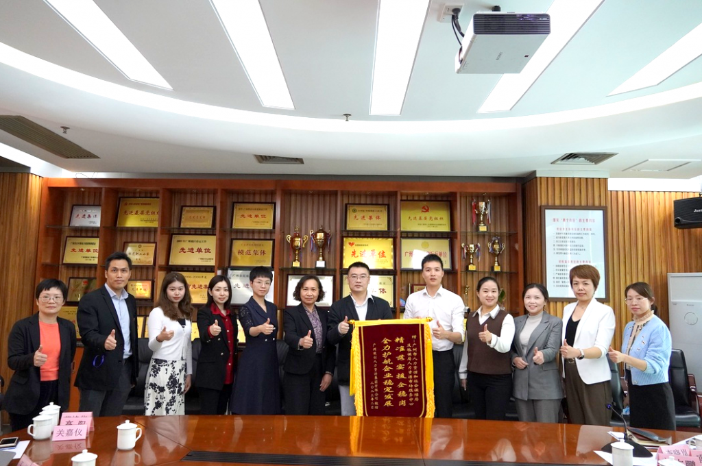 2023年3月6日下午,广州市粤港澳大湾区经济文化促进会(下文简称:湾商会)联席会长单位、红海人力集团华南片区副总经理苏艳华,副会长单位、欢创集团总裁郭志鹏,副总裁盛凤景,湾商会副会长兼秘书长李晓岚等一行,前往广州市人力资源市场服务中心,与中心负责人就“促进就业发展、实现合作沟通”开展友好交流座谈,并赠送感谢锦旗。广州市人力资源市场服务中心副主任黄惠嫦、副主任范超婧及相关部门负责人热情接待了湾商会一行。