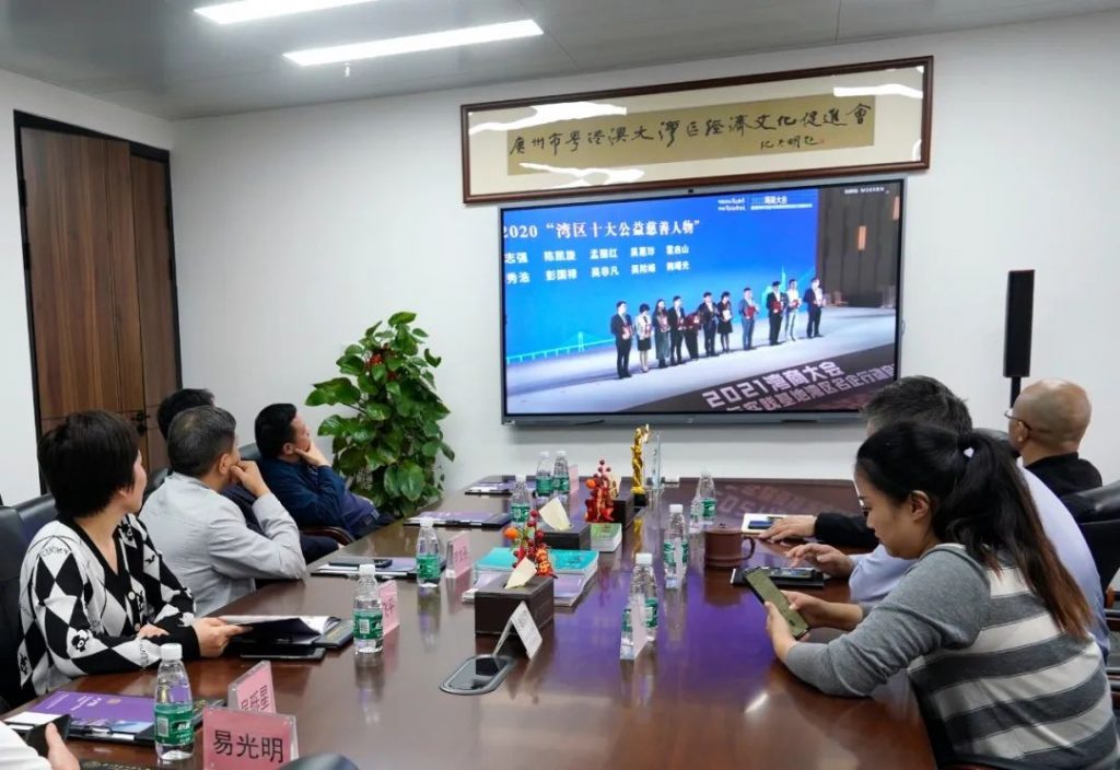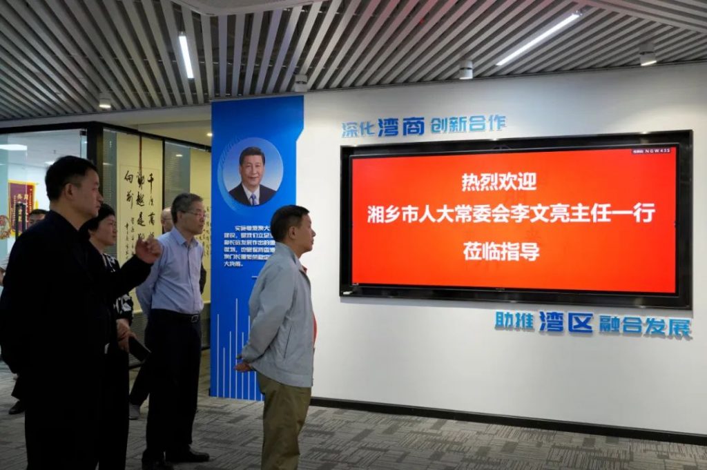 李文亮主任一行饶有兴致地参观了湾商会展厅,并观看了湾商会巡礼片《逐梦湾区》,了解湾商会成立以来的发展历程、办会特色及资源整合情况。李晓岚秘书长对李文亮一行的到来表示热烈的欢迎,她简单汇报了当前湾商会的基本情况以及发展前景。蔡鹏程副秘书长针对近期即将举办的第二届“湾商大会”暨湾区产业高质量发展助力行动,为到访的李文亮主任一行进行介绍。