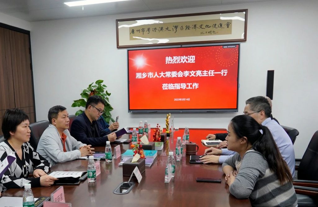 2023年3月14日下午,湖南省湘乡市人大常委会主任李文亮,副主任王红阳,湘乡市政协副主席、市工商联主席杨飞平一行到访广州市粤港澳大湾区经济文化促进会(以下简称:湾商会),与湾商会秘书长李晓岚、执行秘书长陈友军等进行了座谈交流,广州市工商联二级巡视员陈立应邀出席指导。