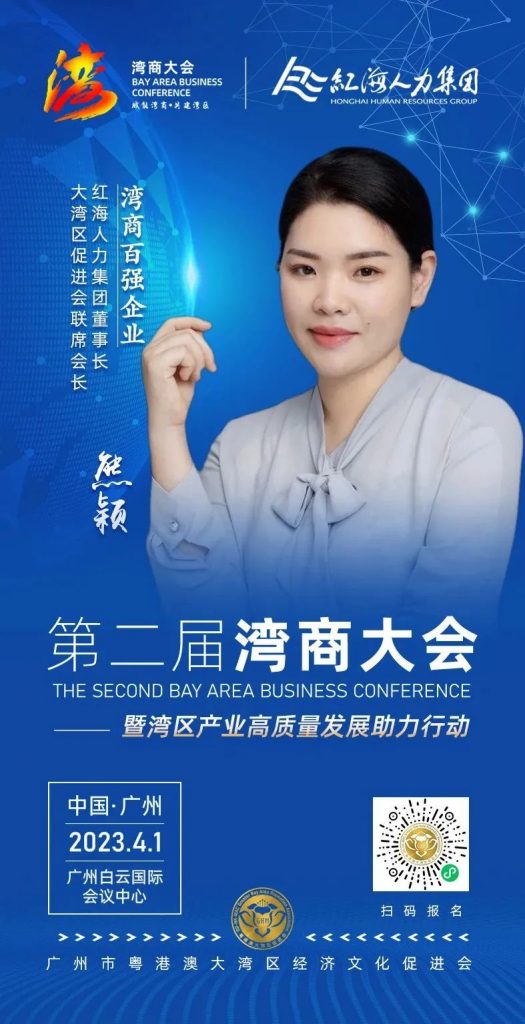 熊颖女士为湾商会联席会长,英国伯明翰大学毕业,现任广州红海人力资源集团股份有限公司(红海人力集团)董事长。社会职务方面:任全国工商联人力资源服务行业委员会主席团成员、中国劳动学会劳务派遣专业委员会副会长、广州市工商联常委、广州市人力资源服务协会会长。曾获广州市创新创业服务领军人才、广州市高层次人才 —— 青年后备人才、越秀区重点企业高级人才优秀奖等荣誉称号。