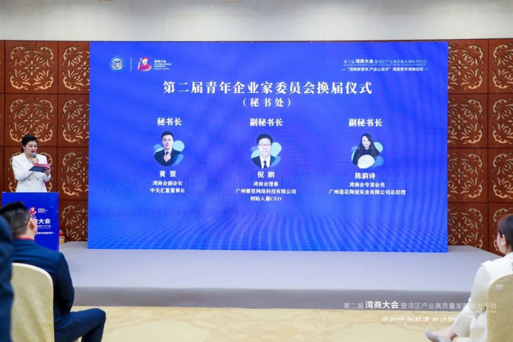经过数月的筹备工作,第二届广州市粤港澳大湾区经济文化促进会(简称:湾商会)青企委骨干成员在湾商青年领袖论坛亮相,换届仪式顺利完成。