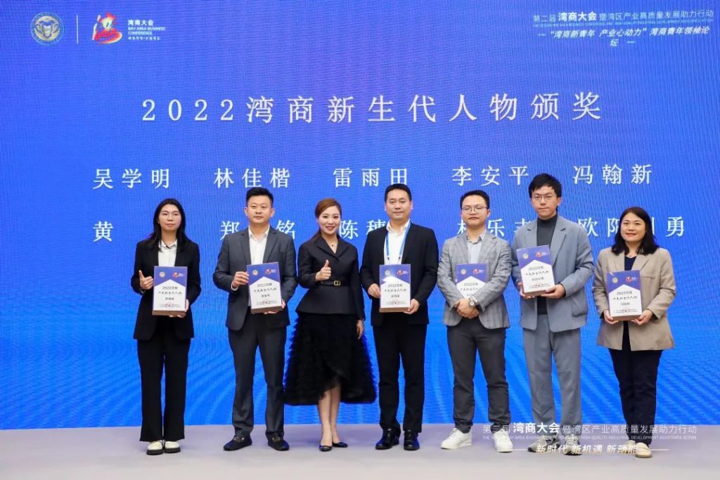 由湾商会牵头,联合亚太日报、新浪广东、香港全港各区工商联、广州粤港澳大湾区企业廉洁与合规管理联合会、暨南大学全球青年领导力研究院等机构开展了“2022湾商十大青年领袖”及“2022湾商十大新生代(新锐)人物”推选活动,经资料审核、网络投票、面试考察、专家推选及网络公示环节,确定了正式的推选名单,会议上为他们颁发了荣誉牌匾。