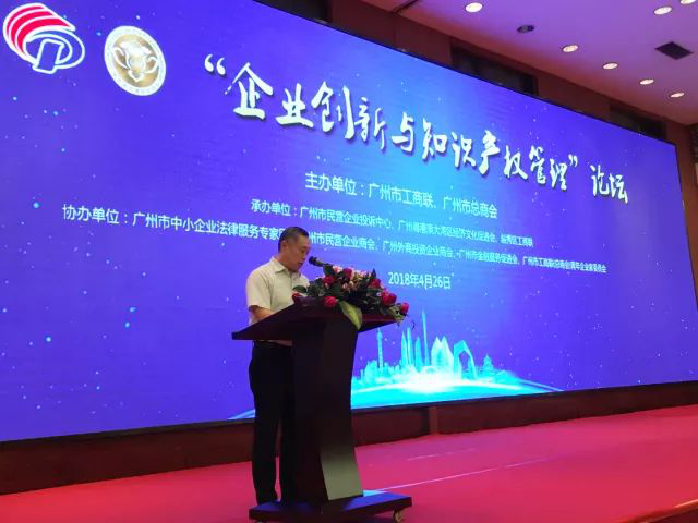 2018年4月26日,我们迎来了第18个世界知识产权日。由广州市工商联、广州市总商会主办,广州市民营企业投诉中心、广州粤港澳大湾区经济文化促进会、越秀区工商联承办的“企业创新与知识产权管理”论坛,在广州东方宾馆隆重举行。