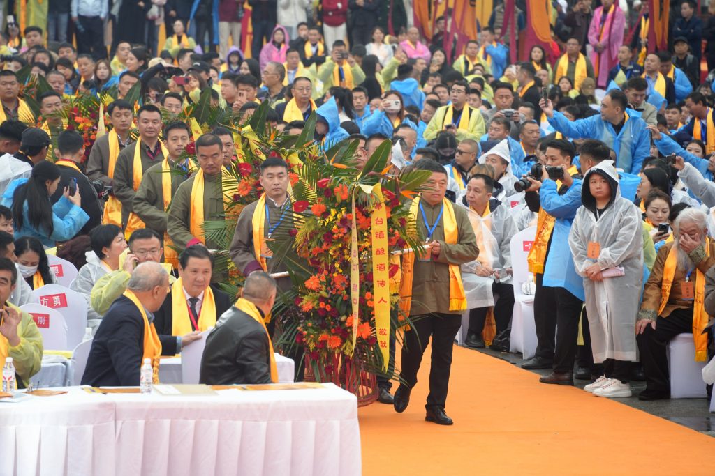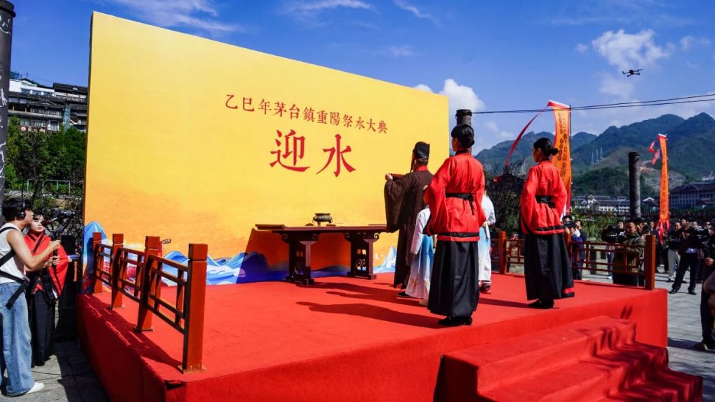重阳祭水大典上,湾商会考察团作为观礼嘉宾,见证了这场延续千年的文化盛典。今年的主祭单位正是贵州老字号一九一五酒厂,董事长穆云峰先生全程参与祭典,其庄重的举止彰显出对酿酒传统的深厚敬意。