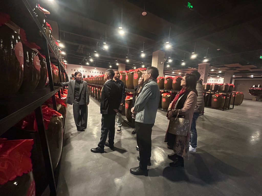 随后,考察团深入酿造车间与文化品鉴馆,在蒸腾的雾气与醇厚的酒香中,沉浸式体验从高粱到美酒的蜕变历程,切身感受传统酿造技艺的独特魅力。