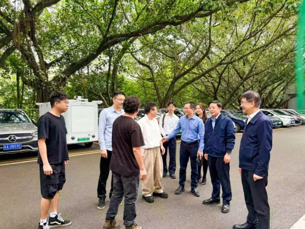 2025年11月7日上午,海珠区委常委、统战部部长王福军带队,区委统战部常务副部长、区侨务局局长曾智勇,三级调研员刁永忠,办公室主任刘晓娅一行莅临广州市粤港澳大湾区经济文化促进会(以下简称“湾商会”)副会长单位广东乐天控股集团旗下乐天智谷,开展企业走访与调研工作。湾商会副会长单位乐天控股集团执行总裁陈叙伦、乐天智谷总经理陈一戈全程陪同,与领导一行共同深入园区内两家海珠人工智能百人会副会长单位,实地考察产业发展实况。