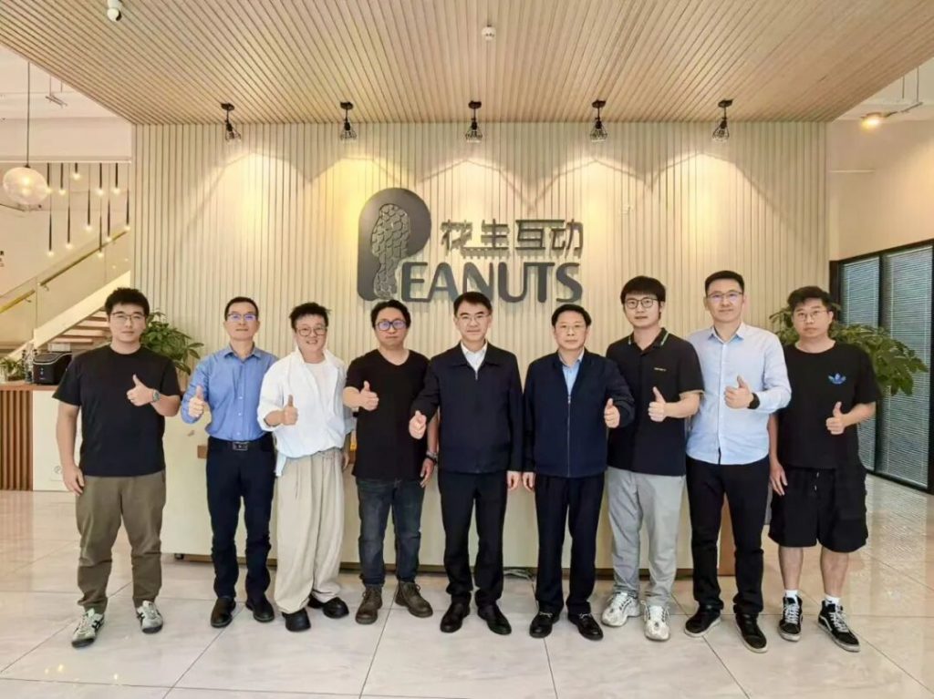 领导一行走进湾商会理事单位花生互动(广州)科技有限公司(以下简称“花生互动”),近距离感受数字化营销与 AI 技术结合的创新活力。