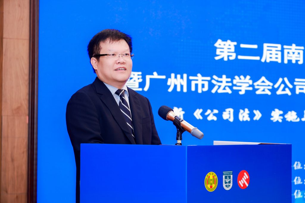 作为湾商会特邀理事,鲁晓明教授在开幕式致辞中深刻阐释了新公司法的时代价值。他指出,新公司法的修订并非简单条文调整,而是涉及公司理念、资本逻辑与治理哲学的系统性重构,是构建高水平社会主义市场经济体制的核心支柱。鲁晓明教授强调,法律的生命力在于实施,新公司法的落地离不开法学家的智慧阐释、裁判者的精准适用与企业家的合规实践,而这正是本次研讨会的核心价值所在。他表示,广东财经大学将与湾商会等机构携手,搭建学界与业界贯通的坚实平台,为新公司法在湾区的精准实施提供智力支撑。