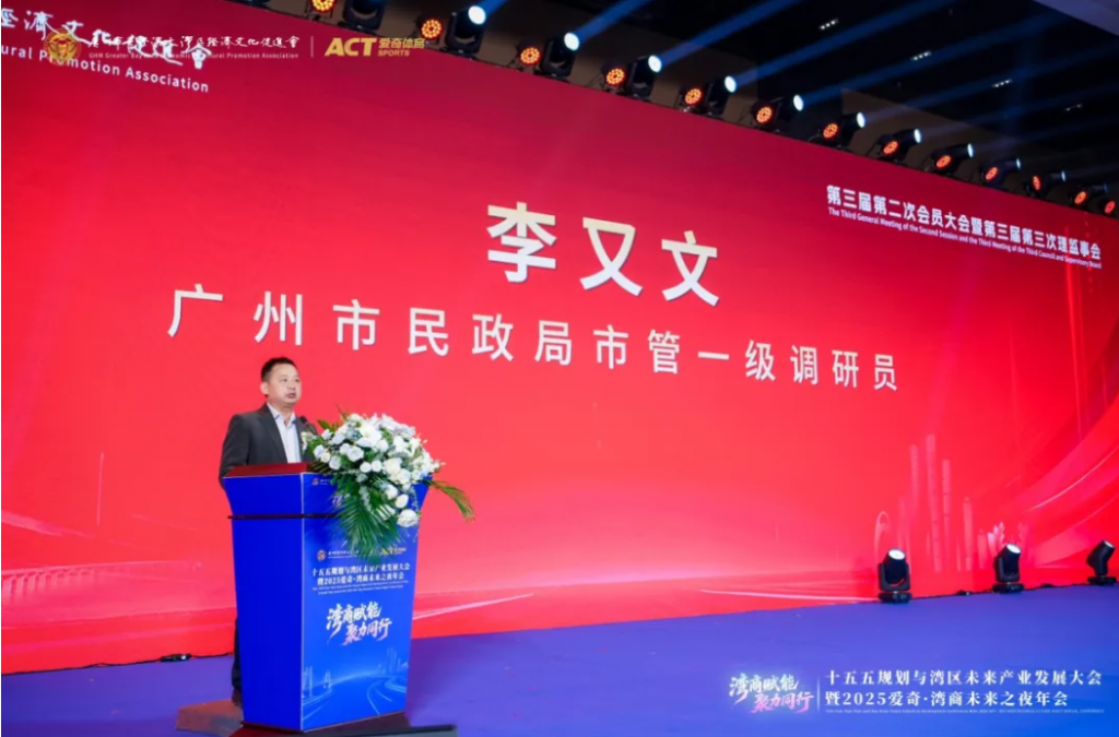 广州市民政局市管一级调研员李又文对大会的召开致以热烈祝贺。他在讲话中高度评价了湾商会作为我市重要综合性社会组织所展现出的政治站位和大局意识,特别是在畅通政企沟通、反映行业诉求、推动产学研合作等方面,切实发挥了不可替代的桥梁纽带作用。