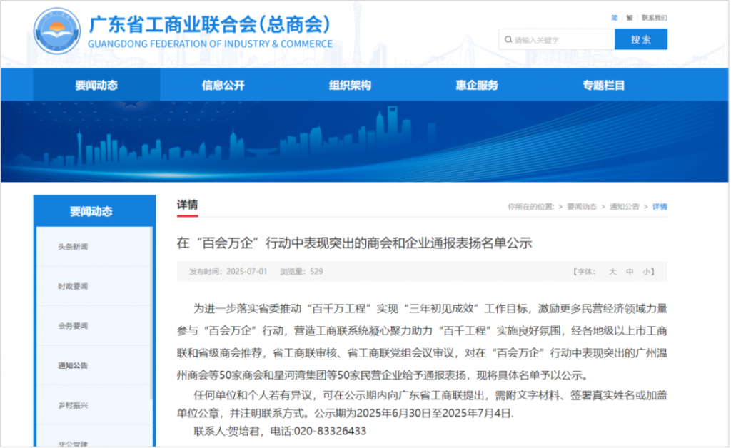 为进一步落实省委推动“百千万工程”实现“三年初见成效”工作目标,激励更多民营经济领域力量参与“百会万企”行动,营造工商联系统凝心聚力助力“百千工程”实施良好氛围,经各地级以上市工商联和省级商会推荐,省工商联审核、省工商联党组会议审议,对在“百会万企”行动中表现突出的商会和民营企业给予通报表扬。