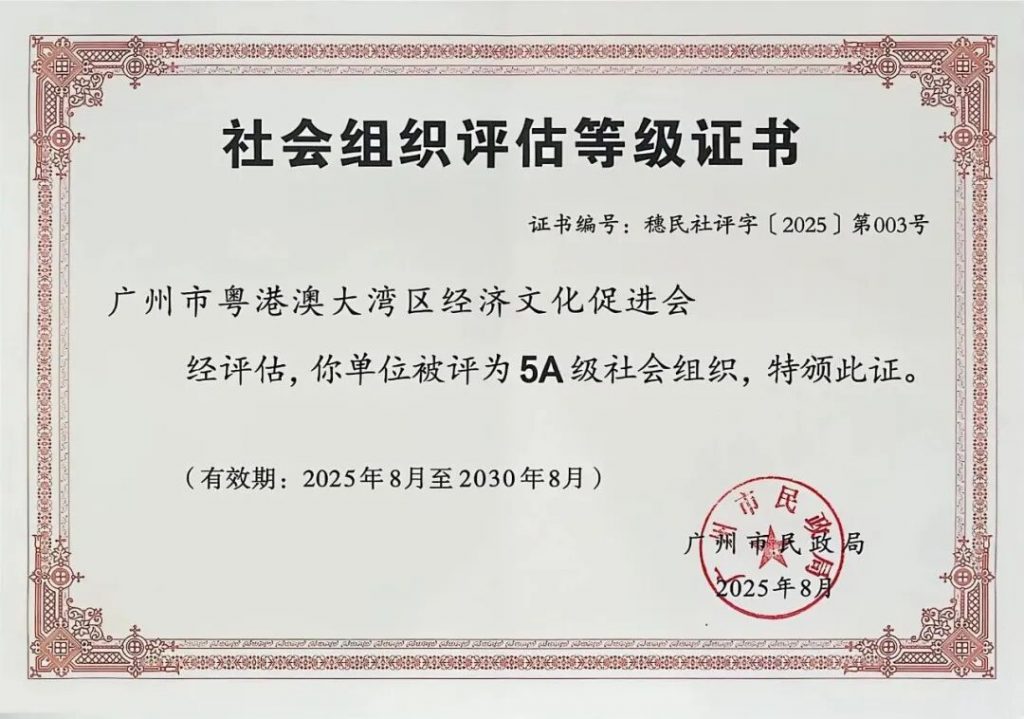 湾商会成功蝉联5A级社会组织,这是自2018年成立以来,湾商会连续两次获此殊荣,持续保持社会组织最高评估等级,充分体现了我会在内部治理、服务能力与社会公信力等方面的综合实力。