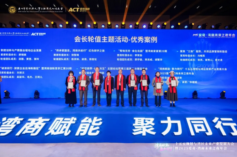 当晚,由爱奇体育独家冠名的“2025爱奇·湾商未来之夜年会”温情启幕。湾商会重磅发布2025年度十件大事等三大荣耀盘点结果,并为新增补成员、合作单位授牌。晚会融合智能科技展示、非遗文化表演、会员文艺汇演及乡村振兴公益助农等多元内容,充分呈现湾区企业家的人文情怀与社会担当。