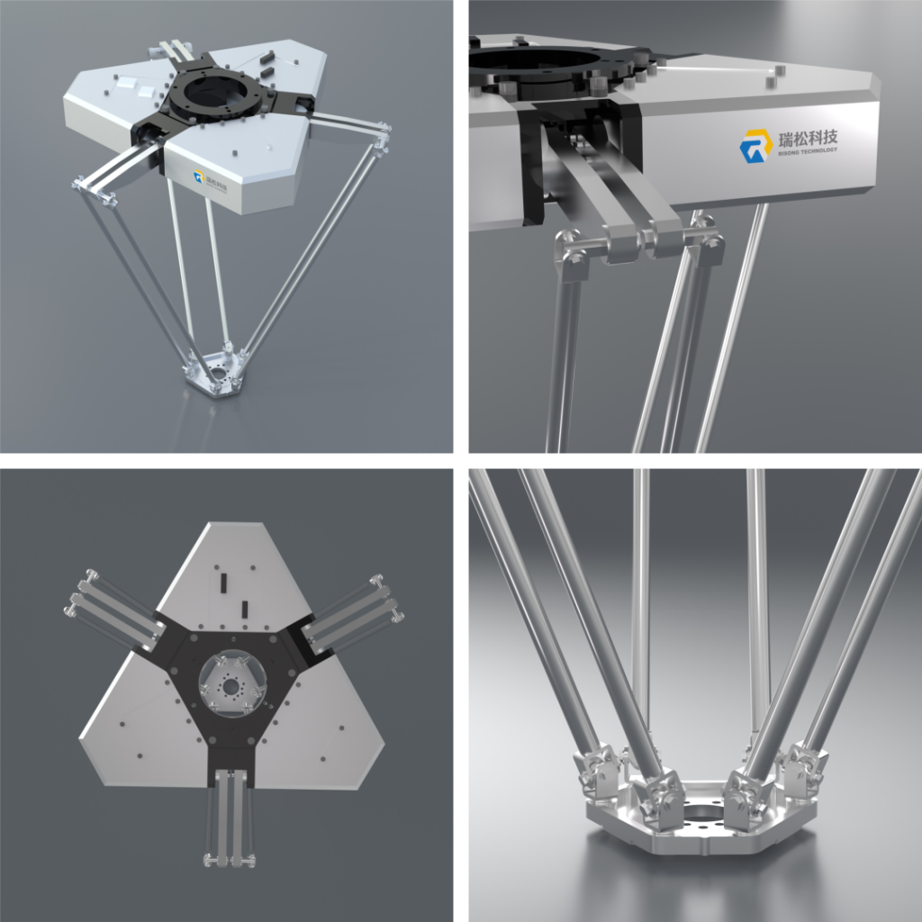 同时机器人配备的【智能控制系统】可以实现手把手示教功能,支持复杂运动路径的直观编程与调整。此外,可扩展的并联杆结构支持3轴、4轴、6轴等多种配置,不同机构组合适应不同任务,如Delta结构(3P3R)、Stewart平台等。标准化接口设计更便于快速应用到不同的解决方案中。