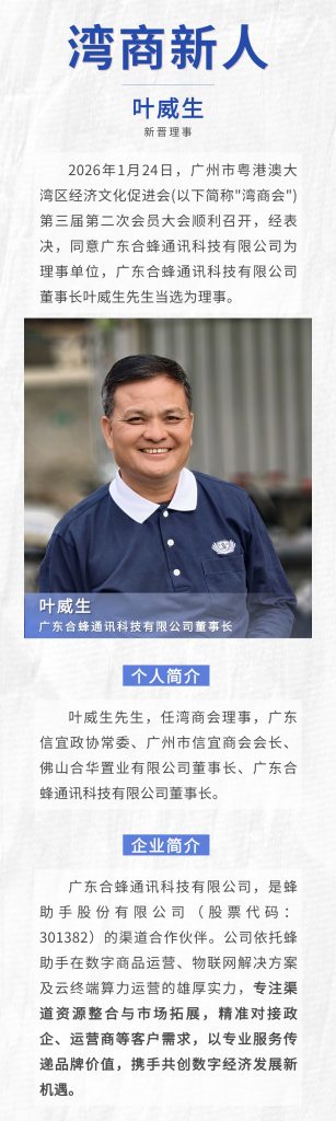 【湾商新人】广东合蜂通讯科技有限公司董事长叶威生任湾商会理事