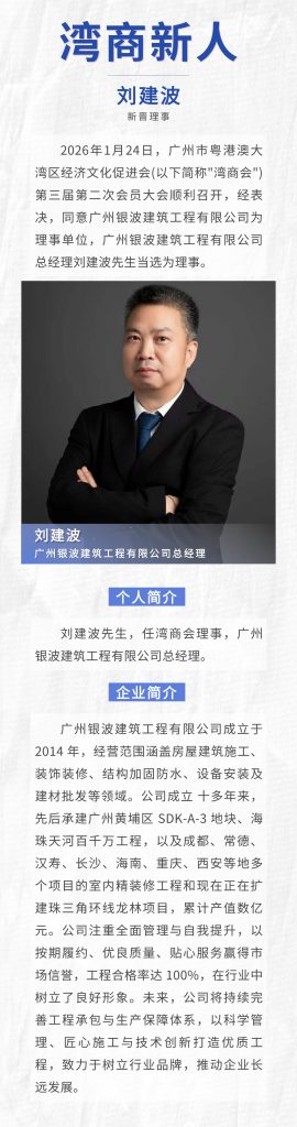 【湾商新人】广州银波建筑工程有限公司总经理刘建波任湾商会理事