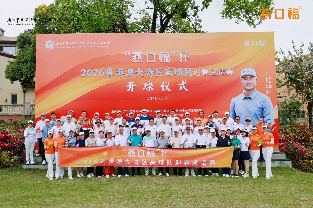 3月24日,由广州市粤港澳大湾区经济文化促进会(以下简称“湾商会”)、粤港澳大湾区高球队主办,广州燕口福食品科技有限公司承办及冠名的“燕口福杯”2026粤港澳大湾区高球队迎春邀请赛在山语湖高尔夫球场圆满举行,为初春时节增添了一抹亮丽的竞技风采。