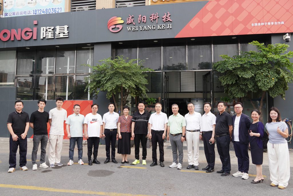 威阳科技总经理招景铭热情接待了走访团。在他的陪同与讲解下,企业家们参观了威阳科技总部展厅。招总重点介绍了威阳科技在光伏组件技术、智能监控系统及微电网管理平台方面的核心创新成果。作为行业领先的分布式能源综合服务商,威阳科技与全球顶尖光伏品牌深度合作,采用具有防阴影、防火、防积尘等特性的高效组件,有效解决了光伏电站长期面临的遮挡与安全难题。
