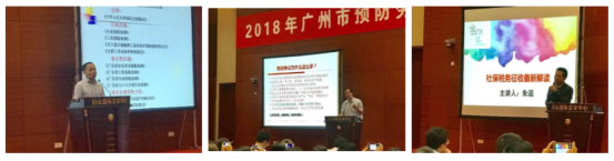 随后,广州市劳动人事争议仲裁院仲裁三庭庭长方德良、人事仲裁庭庭长耿富贤,广信君达律所顾问、专职律师朱滔三位嘉宾先后结合国家政策和大量的案例、事件分析为与会人员带来社会保险争议处理、企业如何预防劳动争议、社保税务征收中企业的常见应对策略等主题演讲。