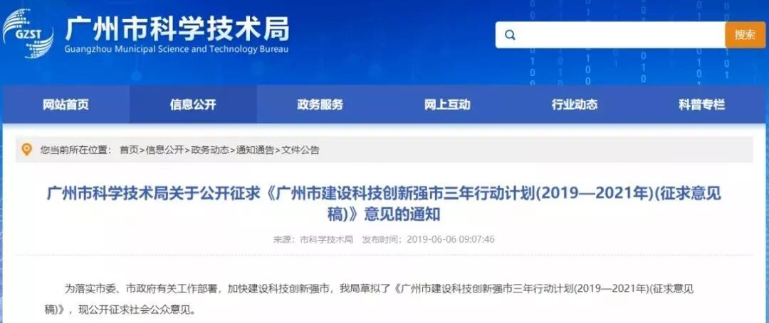 广州市科学技术局官方网站发布了《广州市建设科技创新强市三年行动计划(2019—2021年)(征求意见稿)》(下称《行动计划》),公开征求社会公众意见。《行动计划》旨在打通“科学发现、技术发明、产业发展、生态优化”创新发展全链条,重点搭建平台、培育企业、营造生态,支撑高质量发展。