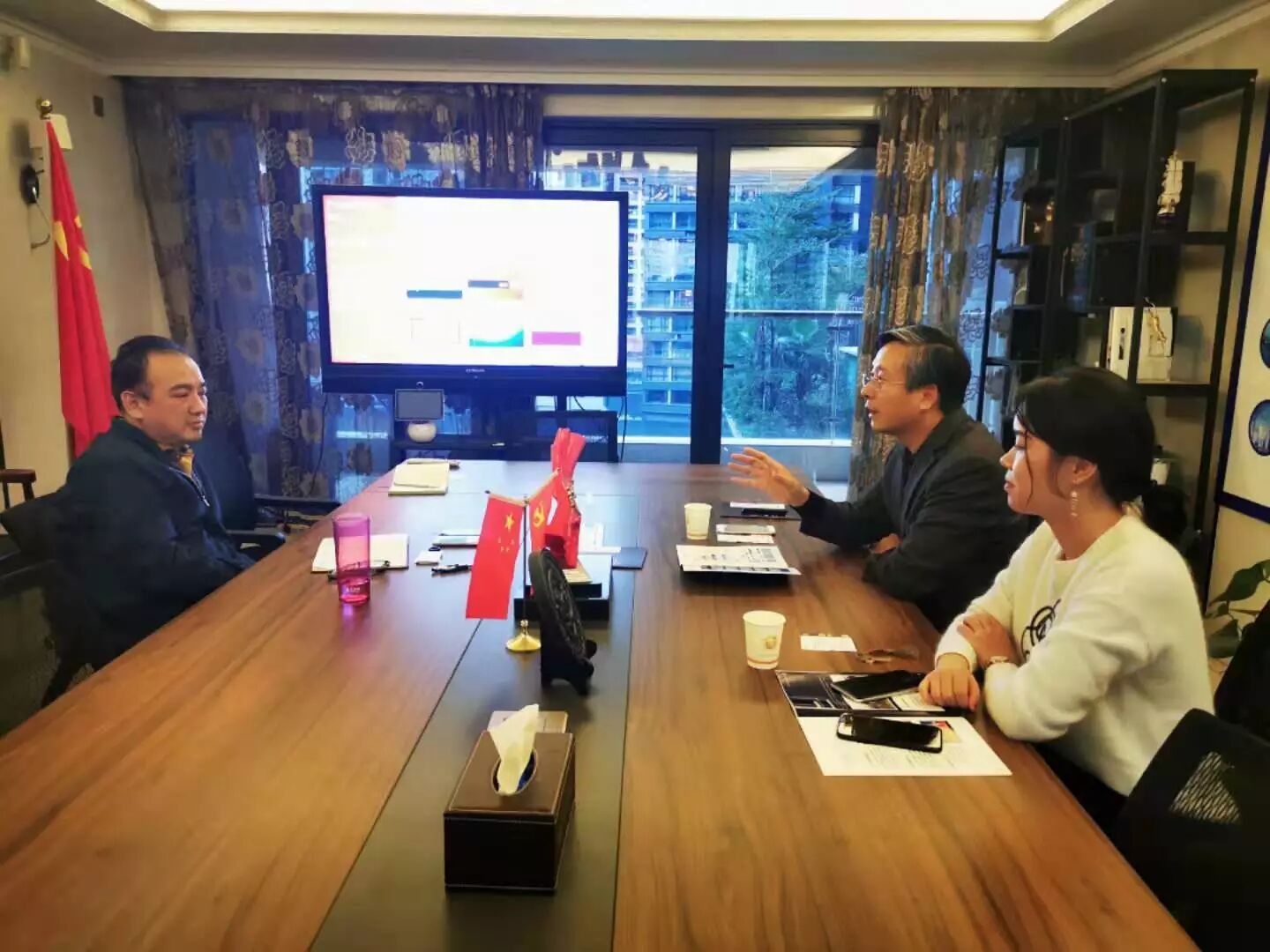 冯洪亮博士向秘书处工作人员详细介绍了孵客集团创业孵化生态系统及其发展历程、暨南大学创业学院商会研究所七大服务中心体系、五山博士联盟高层次人才创新创业与科技成果转化模式、以及与肇庆高新区、怀集县政府开展人才服务合作等情况,并表示希望与我会企业家加强合作与交流,实现资源共享、共谋发展的愿望。