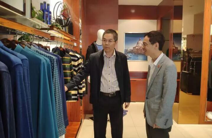 王登乐董事长带大家参观了卡度尼服装商城。卡度尼主打休闲时尚商务类男装,定位于中高端服饰。卡度尼风格独特,经典时尚中不乏潮流休闲,款式设计新颖精致、工艺考究,面料的材质优良,触感非常舒适,众人在参观的过程中都赞不绝口。