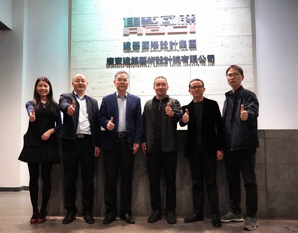 1月9日下午,广州市工商联副主席陈立与粤港澳大湾区经济文化促进会(以下简称“促进会”)秘书处工作人员共同走访我省知名的建筑设计事务所——广东建筑艺术设计院有限公司(以下简称“建艺国际”),与促进会理事、建艺国际董事副院长、总设计师戴虎强先生深入交流,对建艺国际的经营发展情况做了详细了解。促进会副会长、国屹建筑董事长袁兴坤先生陪同走访。