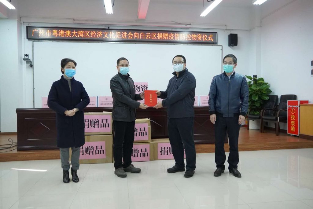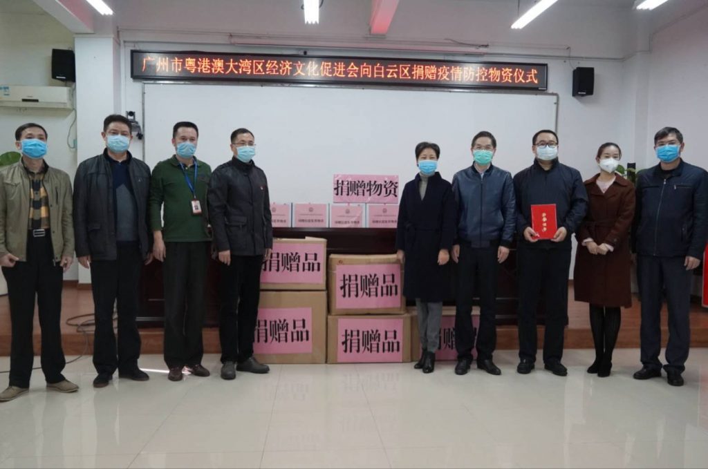 2月21日上午,捐赠仪式在广州市白云区卫生健康局举行,促进会党支部书记、常务副会长徐智峰在仪式上接受由白云区卫生健康局党组书记黄远礼为促进会颁发的捐赠证书。市工商联副主席陈立,白云区政协副主席、白云区卫生健康局局长黄小玲,白云区卫生健康局副局长、白云区红十字会副会长龙峰,及一线定点收治医院白云区人民医院、白云区妇幼保健院等单位代表,促进会秘书长李晓岚等参加捐赠仪式。