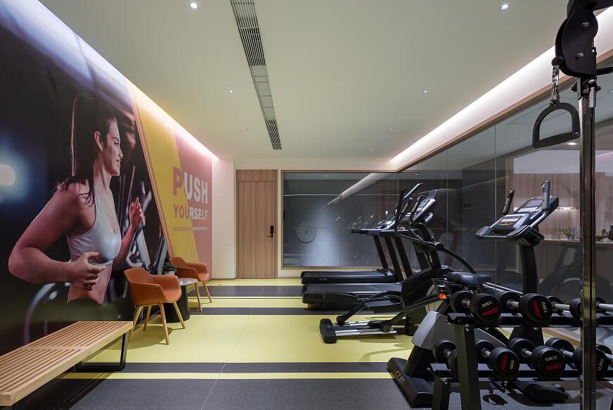 三楼设有健身房、自助洗衣房,带来宾至如归的温馨和周到。电梯旁的自助售货机内陈列着品类齐全的差旅常用商品,十分便捷。餐厅则是颇具现代化设计语言的设计风格,空间宽敞同时又保证了餐区间的分隔,每天7点至10点提供健康美味的早餐。会议室也充满活力的色彩,科技化、智能化的会议设备让高效的会议得以顺畅进行。