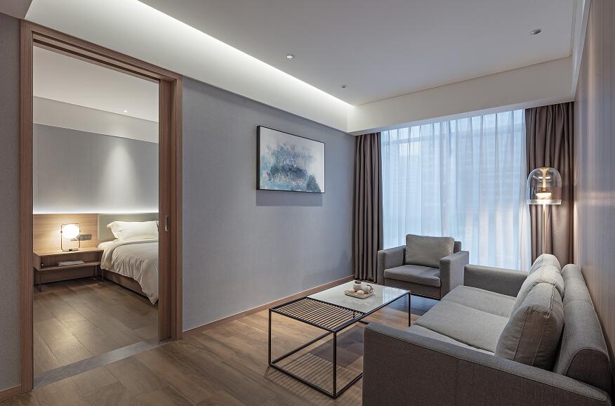 大堂简洁的植物和雕塑配合明暗适中的氛围灯光,视觉效果温馨而时尚。新风系统使客房即使无窗也能也能保持空气清新,手绘壁画让人眼前一亮,TOTO品牌洁具带来畅快的淋浴体验。还有柔软的床上用品、茶几上的精致茶具、人性化的橱柜设计……种种用心的细节让住客束缚了一天的神经在这里肆意地放松。