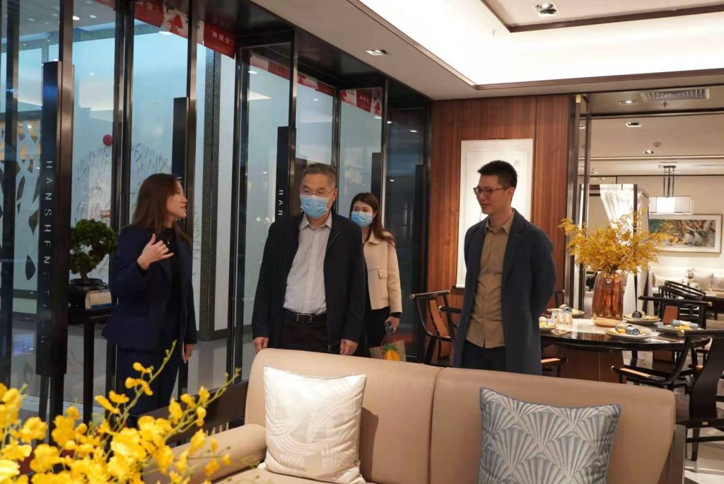 1月20日上午,广州市粤港澳大湾区经济文化促进会(以下简称“促进会”)秘书处随广州市工商联副主席、二级巡视员陈立走访新中式红木家具领域的引领者——瀚晟堂琶洲吉盛伟邦旗舰店,与促进会理事(拟任)、瀚晟堂董事长蔡秀山先生座谈交流,了解企业发展情况。