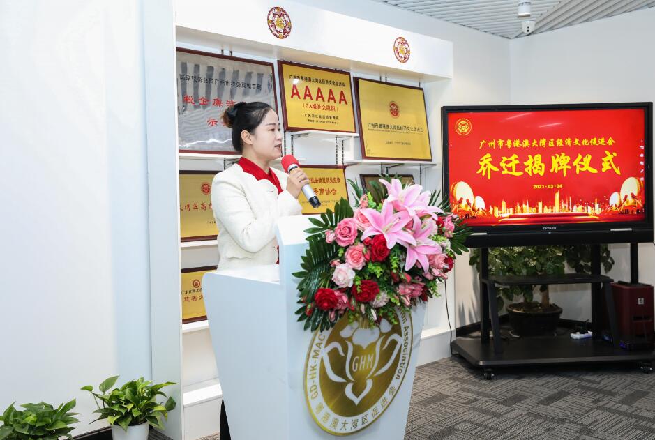 3月4日上午,广州市粤港澳大湾区经济文化促进会(以下简称“促进会”)乔迁揭牌仪式在广州琶洲乐天智谷隆重举行,新址门外花团锦簇,喜气洋洋,仪式现场高朋满座、气氛热烈。