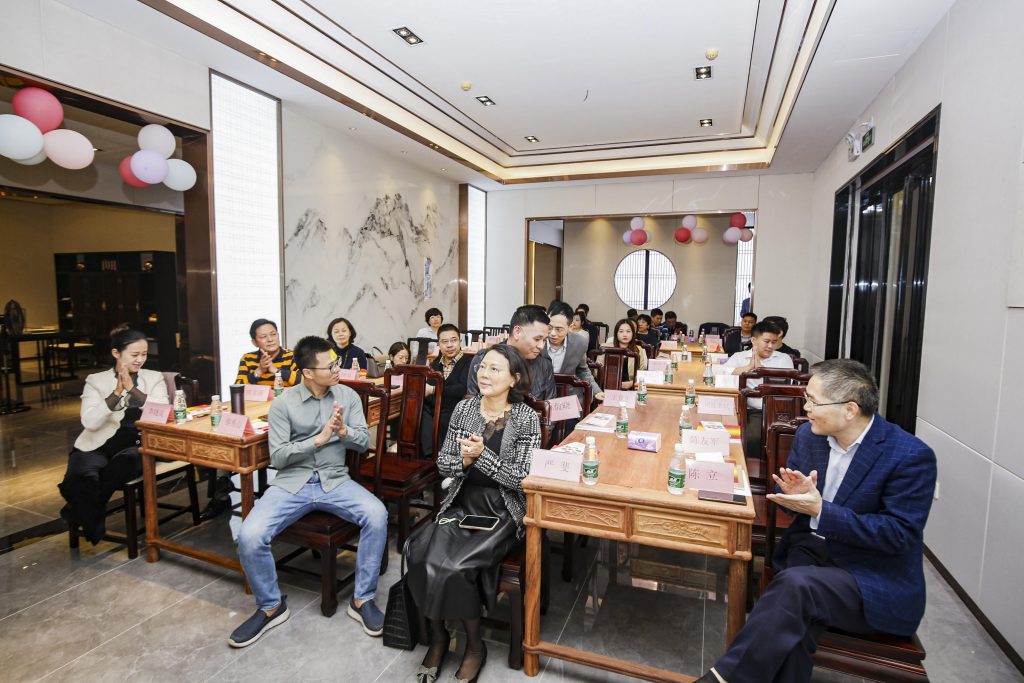 促进会的新老会员们轮流介绍了自己和企业的相关业务,就网络科技、会展、环保、建筑等领域进行信息交流和对接。由广东大森林红木实业有限公司董事长蔡秀山带来精彩的企业主题分享。蔡董事长自幼对红木家具情有独钟,毕业后一直从事与红木相关工作,多年来坚守工匠精神,把红木家具做到极致。他在活动现场表示,自己会坚守初心,做一个专注的红木古典家具人,致力于将大森林打造成中国红木家具优质品牌,发扬传统工艺精髓。