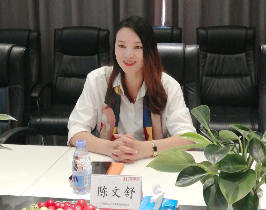 5月9日,粤港澳大湾区经济文化促进会(以下简称促进会)副秘书长郑静静走访广州欢创人力资源集团有限公司(以下简称欢创集团),与该公司总裁陈文舒,总裁助理蒋咪、黄东和人事行政经理李小方等人座谈交流。广州市工商联二级巡视员陈立应邀出席座谈会。