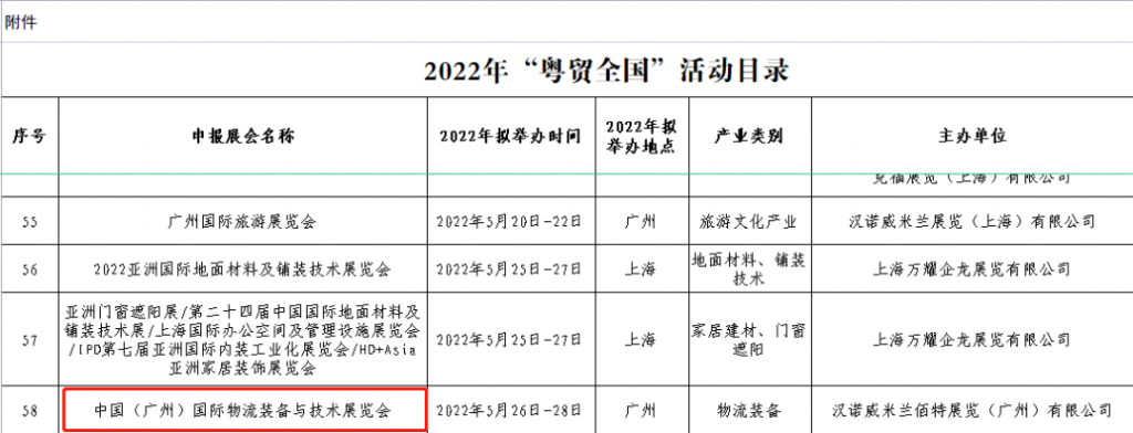 近日,我会会员单位汉诺威米兰佰特公司主办的中国(广州)国际物流装备与技术展览会(简称“汉诺威LET广州物流展”)获得“广东会展项目百强”称号,同时入选广东省级重点经济贸易活动“粤贸全国”项目。