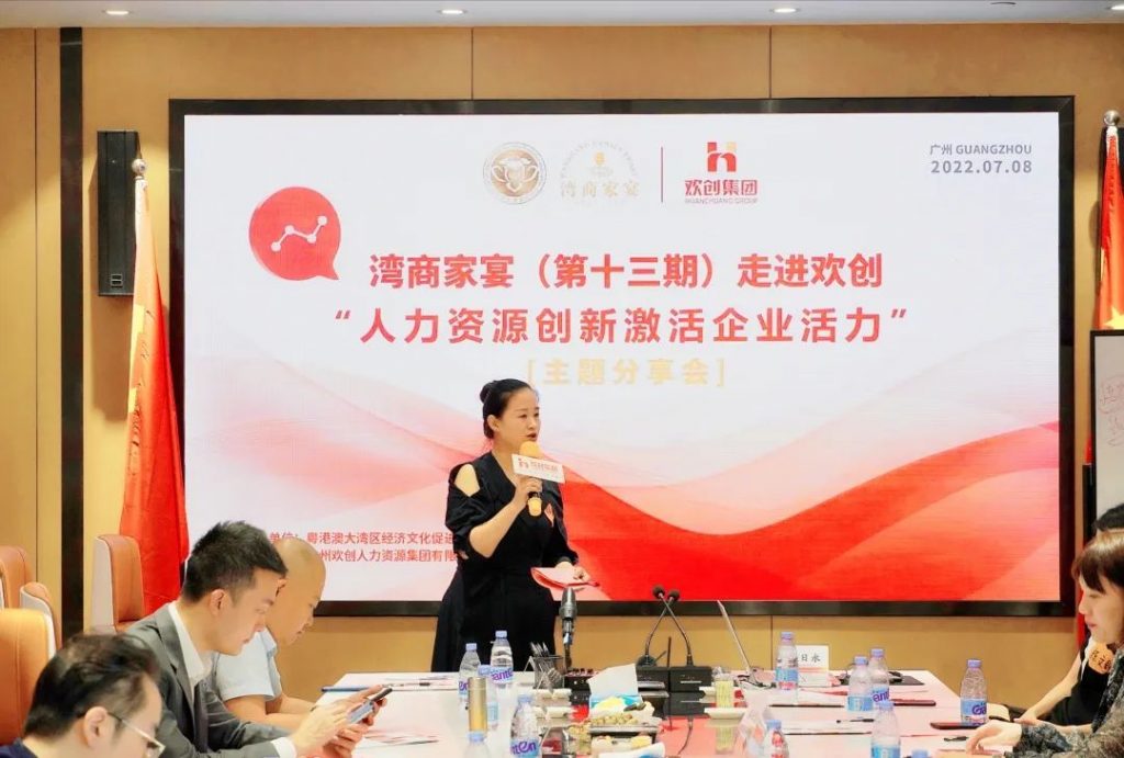 7月8日下午,由广州市粤港澳大湾区经济文化促进会(以下简称:促进会)主办,广州欢创人力资源集团有限公司(以下简称:欢创集团)承办的第十三期湾商家宴“人力资源创新激活企业活力”主题分享活动于欢创集团顺利举行。